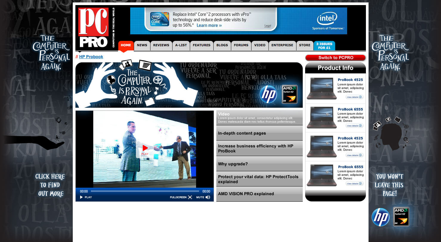 For this HP Vision campaign, I pitched two site skins. The first one was more my style, slightly creepy and Burtonesque. The second, was a far safer and more corperate design.