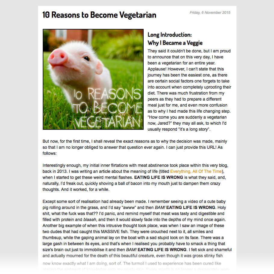 Nobody likes a preachy vegetarian, but at the same time, there are so many loud facts out there right now, that I figurd there was still space for the subject to be approached on a more humorous level.